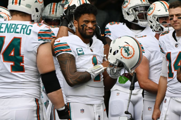 1 of 5 | Quarterback Tua Tagovailoa led the Miami Dolphins to a 9-3 record this season. File Photo by Larry Marano/UPI | License Photo