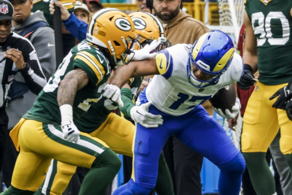 1 of 5 | Puka Nacua (R) of the Los Angeles Rams leads my Week 1 fantasy football wide receiver rankings. File Photo by Tannen Maury/UPI | License Photo