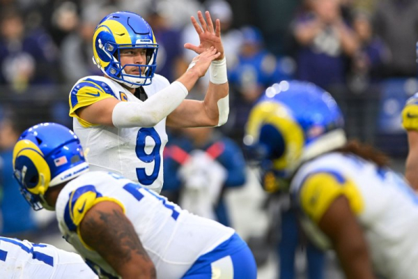 1 of 5 | Los Angeles Rams quarterback Matthew Stafford calls for a time out against the Baltimore Ravens on Sunday at M&T Bank Stadium in Baltimore. Photo by David Tulis/UPI | License Photo
