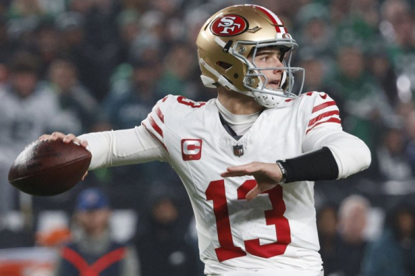 1 of 5 | San Francisco 49ers quarterback Brock Purdy throws against the Philadelphia Eagles on Sunday at Lincoln Financial Field in Philadelphia. Photo by Laurence Kesterson/UPI | License Photo