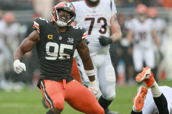 All-Pro defensive end Myles Garrett was seen wearing a walking boot on his left foot after the Cleveland Browns’ 28-3 loss to the Baltimore Ravens in Cleveland. He logged a sack, raising his total to 5.5 through four games.