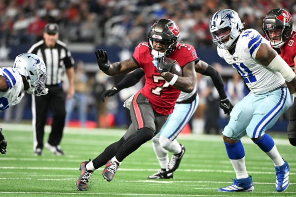1 of 5 | Tampa Bay Buccaneers running back Bucky Irving runs against the Dallas Cowboys on Sunday at AT&T Stadium in Arlington, Texas. Photo by Ian Halperin/UPI | License Photo