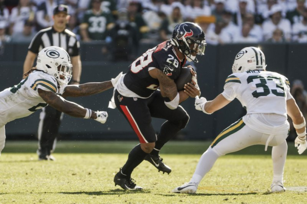 The Texans running back totaled 153 yards from scrimmage and three scores in the 34-10 victory Monday at AT&T Stadium in Arlington, Texas. He now has 10 rushing scores in his first season with the AFC South franchise. Advertisement