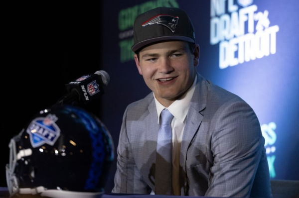 1 of 5 | New England Patriots rookie Drake Maye can be plugged in as a Week 7 streamer. File Photo by Rena Laverty/UPI | License Photo