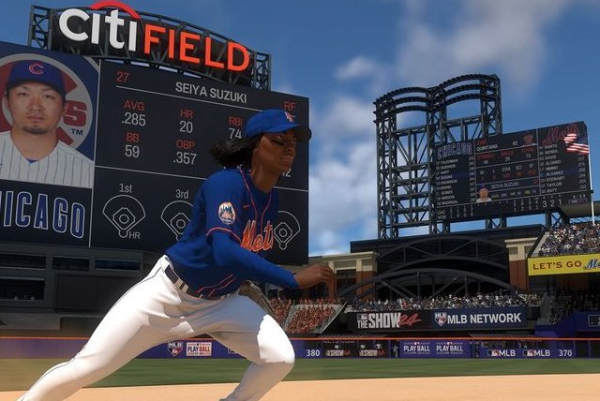 A screenshot from MLB The Show 24 shows a female character playing for the New York Mets. Photo courtesy of Sony Interactive Entertainment