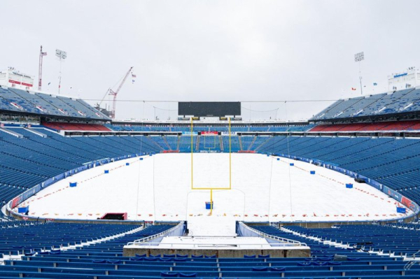 Highmark Stadium is near Lake Erie, which lacks ice cover and makes lake-effect snowfall likely for Sunday night.