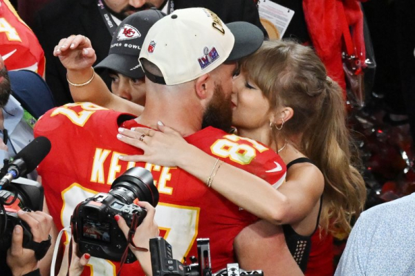 Travis Kelce celebrated his third Super Bowl with a long embrace and kiss of girlfriend Taylor Swift on the field of Allegiant Stadium after the Kansas City Chiefs beat the San Francisco 49ers on Sunday in Las Vegas.
